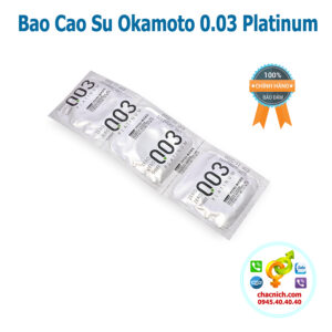 - Okamoto Platium 0.03mm chính hãng với nhiều tính năng độc đáo, lạ, sẽ mang lại cho bạn cảm giác thật tuyệt khi yêu!