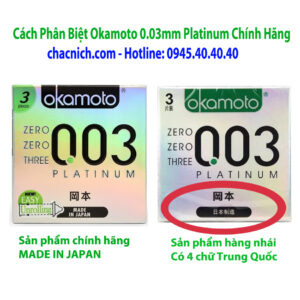 Cách phân biệt phẩm Okamoto platinum 0.03mm chính hãng: