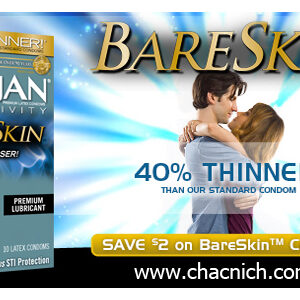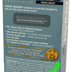 Bao cao su cao cấp Trojan Sensitivity BareSkin là dòng sản phẩm cực siêu mỏng chỉ với 0.035mm, Trojan Sensitivity BareSkin có đặc tính mỏng và mềm mại hơn 40% so với những loại bao cao su mỏng khác