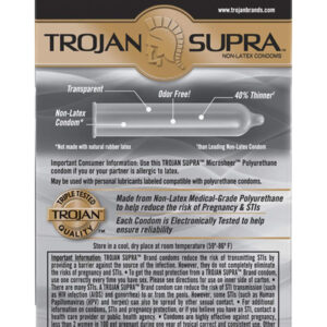 - Hộp 6 BCS Trojan BareSkin Non-Latex được làm từ chất liệu Polyurethane nên có đặc tính là không màu, không mùi và siêu mỏng 0.024mm
