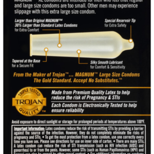 Bao cao su size lớn 60mm Trojan Magnum XL được bổ sung thêm nhiều gel bôi trơn bên ngoài bao giúp cuộc yêu kéo dài mà không bị gián đoạn