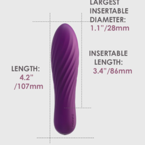 Chày rung mini SVAKOM TULIP VIOLET được thiết kế hình dáng nhỏ gọn, dọc thân máy có nhiều đường vân soắn nhằm tác động trực tiếp điểm G giúp phái đẹp thăng hoa mạnh mẽ hơn khi sử dụng sản phẩm này