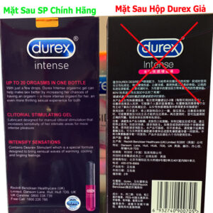 - Sản phẩm Gel durex intense organic chính hãng trên hộp không có chữ Trung Quốc