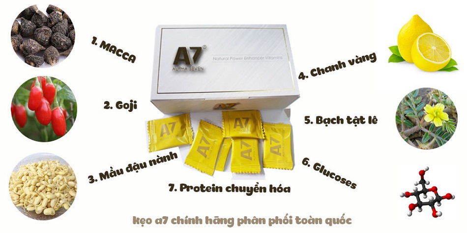 • Thành phần: Tinh chất Ginseng, Hạt Macca, Trái Goji, Đậu nành, Chanh vàng, Bạch tật lê, Glucoses, Protein chuyển hóa